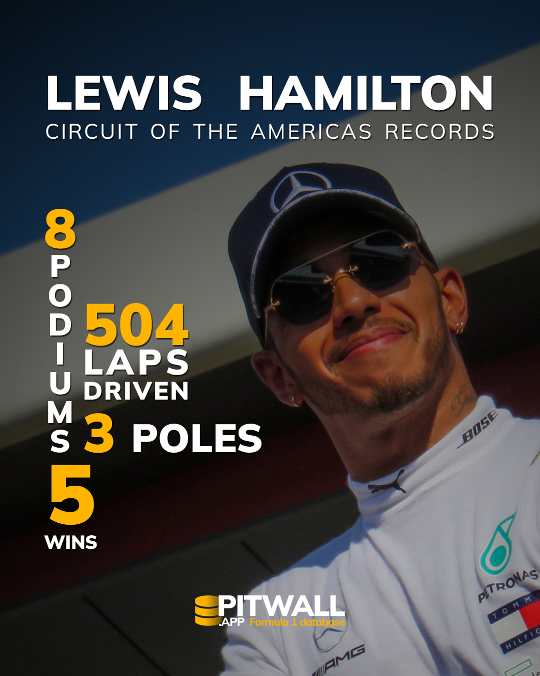 Two other records Hamilton holds are most podiums and most laps driven. In total he drove 504 race laps at COTA and he was on the podium 8 times, meaning he didn’t finished on the podium only on 1 occurrence.